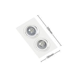Especificações gerais do produtoDimensões AxLxP mm : 35x235x130Material: Termoplástico Proshield UVGarantia: 5 anos junto ao fabricanteReferência: SE-330.3174 Jet Black ; SE-330.3173 Branco Lâmpada Inclusa: NãoLâmpada Indicada: PAR20Local de Uso: InternoNúmero de Lâmpadas: 2Soquete: E27Nicho para Instalação: 115x220x115mm A profundidade pode variar de acordo com a lâmpada utilizada.Formato: RetangularVoltagem: BivoltFoco Orbital: 360Compatibilidade: Utilizar somente com lâmpada LEDPlano: SimSistema Click: Substitui a lâmpada sem remover o embutidoO que acompanha o produto1 Spot