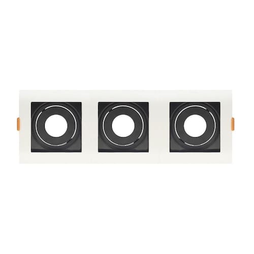 Spot de Embutir Quadrado Recuado Triplo Mr11 Direcionável Branco com Preto