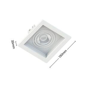 Dimensões AxLxP (mm): 35x130x130;Material: Termoplástico Proshield UV;Garantia: 5 anos junto ao fabricante;Grau de Proteção: IP 20;Lâmpada Inclusa: Não;Lâmpada Indicada: PAR20;Local de Uso: Interno;Número de Lâmpadas: 1;Soquete: E27;Nicho para Instalação: 115x115x125*mm *a profundidade pode variar de acordo com a lâmpada utilizada;Formato: Quadrado;Voltagem: Bivolt;Foco Orbital: 360°;Compatibilidade: Utilizar somente com lâmpada LED;Sistema Click: Substitui a lâmpada sem remover o embutido;