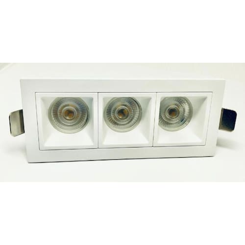 Soquete: GU10 Cor: Branco / Preto Material: Plástico ABS + UV Modelo: Retangular Dimensões: 13 x 5,5 x 3 cm Nicho para embutir: 11,9 x 4 cm Proteção: IP20 Acabamento: Recuado