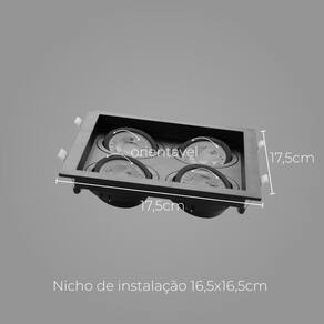ESPECIFICAÇÕES TÉCNICAS: Marca: Save energy Modelo: SE-330.2898 Cor: Preto Material: Proshield UV Tipo de Soquete: GU10 Número de soquetes: 4 Tipo de lâmpada que utiliza: LED MR16 Voltagem: Bivolt Não Dimerizável Ângulo de Abertura: 360° Sistema Click Indicado para uso: Interno Largura: 17,5 cm Altura: 17,5 cm Profundidade: 3,5 cm Nicho de instalação: 16,5 x 16,5 x 8 cm Peso líquido em gramas: 155 g Garantia: 2 anos