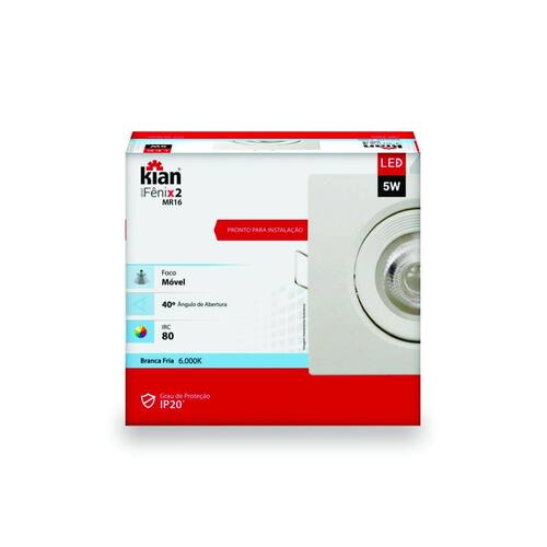 Características: Iluminação de altíssima qualidade, deixando qualquer ambiente aconchegante e moderno; Foco e excelente reprodução de cor no facho de luz; Alta economia de energia; Longa vida útil; Não emite raio ultravioleta, nem infravermelho; - spot led mr16 de embutir kian 5w bivolt Tensão de entrada: 100-240v Potência: 5w Frequência: 50/60hz Fluxo luminoso: 400lm Eficiência luminosa: 80lm/w Cor da luz: 6000k (branco-frio) Irc: 80 Ângulo de radiação: 40 Peso da lâmpada: 40g