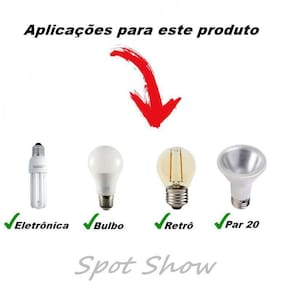 Alguns detalhes do produto Formato Redondo Material alumínio Tipo de soquete: E-27 porcelana Tipos de lâmpadas compatíveis: Bulbo Led até 12 w, Par-20 Led ou Halogênea, Fluorescente compacta espiral 20 w ou tradicional 20 w , incandescente até 100 w, Retro filamento.