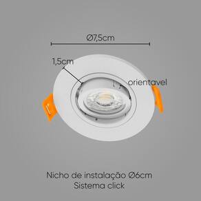 Ele é super prático de instalar, pois possui sistema Click, foco orbital e IP20, assim, é próprio para áreas internas, seja em residências, escritórios, restaurantes e clínicas.