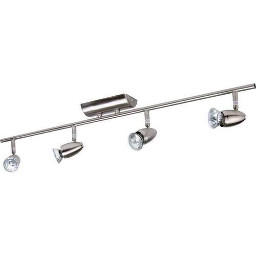 Spot trilho arandela euro quádruplo para led Spot trilho euro considerado uma peça técnica e funcional, luminária leve e fácil de instalar é indicada para salas, quartos, corredores, hall de entrada, cozinhas e escritórios. Seu material é aço escovado. Comporta 4 lâmpadas de soquete gu10 de led com potência de 7w não inclusas . Spot euro de sobrepor articulado em aço escovado. 4x led gu10 não incluído. Produto montado. Medidas: l 85 cm - p 13 cm - h 12 cm. Bivolt x005fx000d Marca: Não Informado