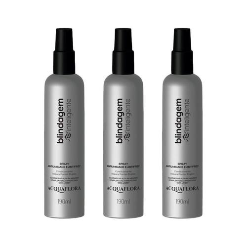Spray acquaflora blindagem inteligente condicionante 190ml - kit com 3un Descrição O spray acquaflora blindagem inteligente condicionante foi desenvolvido para selar as cutículas dos fios, proporcionando proteção contra agressões externas, como calor de chapinhas e secadores, além de agentes climáticos. Sua fórmula leve e condicionante auxilia no alinhamento dos fios, deixando-os mais macios, brilhantes e com movimento natural. Ideal para cabelos que necessitam de proteção extra e um cuidado intensivo, sem pesar. Modo de uso Aplique o spray acquaflora blindagem inteligente condicionante nos cabelos limpos e úmidos, distribuindo uniformemente ao longo dos fios. Não enxágue. Pode ser antes de escovar ou pranchar, oferecendo proteção térmica e garantindo resultados mais duradouros. Marca: Não Informado