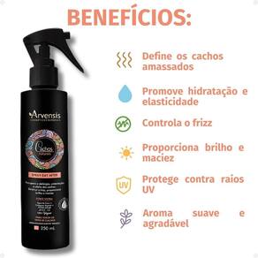 Os cabelos cacheados, muitas vezes, sofrem com o aspecto amassado, o frizz excessivo e a perda da definição dos cachos. Pensando nisso, a Arvensis desenvolveu o Day After, um spray com efeito memória que confere ultra definição aos cabelos, além de promover hidratação, elasticidade, controle do frizz, brilho e maciez. Com uma formulação enriquecida com filtro solar, protege os cabelos da ação nociva dos raios UV e da oxidação - que leva ao envelhecimento precoce dos fios. Recupera a definição, umectação e efeito dos cachos. Diminui o frizz, proporciona brilho e maciez.