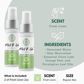 - Liberte o frescor do linho: nosso spray de vaso sanitário para cocô é o seu segredo para um banheiro fresco e perfumado de linho. Apenas alguns sprays eliminam odores, deixando para trás um aroma de linho limpo e reconfortante. Este poderoso spray elimina odores. Simples, eficaz e ecológico, é a solução perfeita para qualquer banheiro.