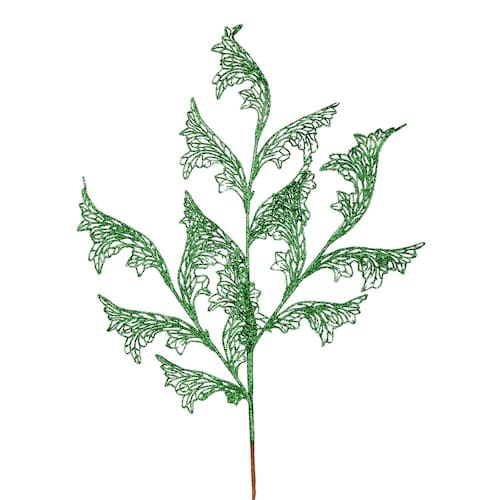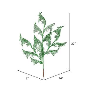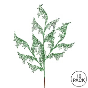 Spray artificial de Natal Vickerman 27" Green Glitter Coral Bells Leaf Lace. Inclui 12 sprays por pacote.