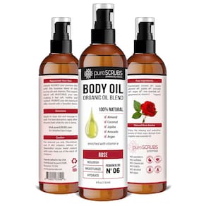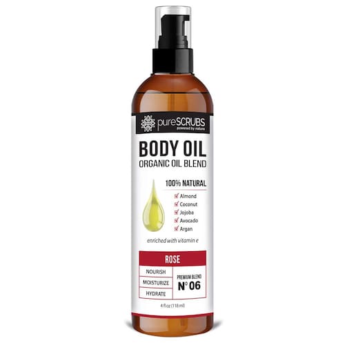 pureSCRUBS Spray de óleo corporal de rosas ultra hidratante para pele seca, estrias, cicatrizes, super mistura orgânica de jojoba, argan, coco, amêndoa doce e óleos de abacate enriquecidos com vitamina E - Lg 113 g