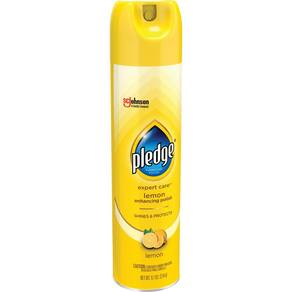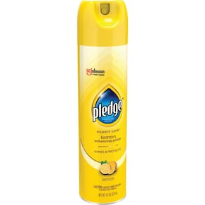- Pledge Expert Care Lemon Enhancing Aerosol é um limpador de móveis e polidor de móveis que brilha e protege superfícies de madeira e muito mais