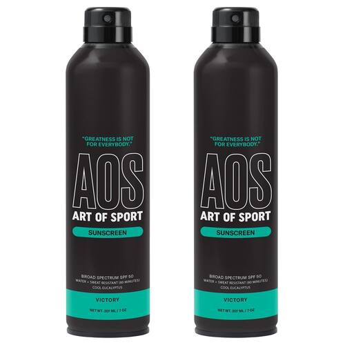 Spray protetor solar Art of Sport, proteção UVA/UVB SPF 50, resistente à água, perfume de eucalipto Victory, 7 onças, pacote com 2 — Feito para atletas, por atletas: apresentamos nossa nova fórmula que desafia o sol, feita para aqueles que exigem proteção de pele testada em batalha. 2 unidades de protetor solar — Proteção de amplo espectro: o SPF 50 protege contra os raios UVA e UVB, protegendo você em todos os ambientes. - Durabilidade testada: a cobertura de 80 minutos garante que você fique preso sem interrupções. A segurança resistente à água permite que você aproveite o suor em sua busca pela grandeza. - Construído de forma resistente, mas suave: infundido com aloe vera, vitamina E e óleo de abacate para hidratação intensa, garantindo que sua pele permaneça nutrida durante todo o dia. - Defesa favorável aos recifes: sem comprometer a natureza. Sem octinoxato e sem oxibenzona, protegendo sua pele e o oceano. - Vegano e livre de crueldade: formulado sem ingredientes de origem animal porque a integridade é tão importante quanto a resistência.