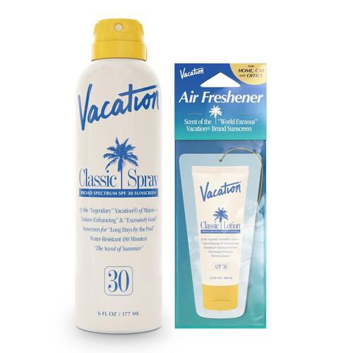 O Vacation Classic Spray SPF 30 é um spray protetor solar limpo e leve projetado para otimizar o lazer e a proteção com seu aroma exclusivo premiado, ingredientes ativos de alto desempenho, tecnologia “sem aerossol”, “spray contínuo” e aplicação verdadeiramente transparente em todos os tons de pele. - SPF DE ALTO DESEMPENHO — Características principais: propulsor sem aerossol, tecnologia de pulverização contínua, livre de oxibenzona e octinoxato, livre de PEG e parabenos, livre de crueldade, vegano, testado dermatologicamente, proteção SPF 30 de amplo espectro e resistente à água (80 minutos). - PERFUME PREMIADO — Apresentamos o Vacation Classic Spray SPF 30, o protetor solar mais cheiroso do mundo. Desenvolvido em conjunto com a ARQUISTE Parfumeur, o perfume “World-Famous” da Vacation combina notas de coco, banana, água da piscina, brinquedo de piscina e lycra de maiô — uma combinação premiada que transporta instantaneamente o usuário para o paraíso. - LIMPO, LEVE E TRANSPARENTE — Nosso protetor solar em spray de amplo espectro foi projetado especificamente para ser invisível e sem riscos em todos os tons de pele, com um toque leve e não oleoso. Nosso spray protetor solar contém ingredientes CleanClassic, projetados para hidratar sem deixar a pele pegajosa, incluindo óleo de coco, aloe vera, extrato de banana, vitamina E e niacinamida (vitamina B3), tornando-o adequado como hidratante em spray protetor solar. - SPRAY ECOLÓGICO E SEM AEROSSOL — Um spray protetor solar SPF 30 de amplo espectro que utiliza as tecnologias “sem aerossol” e “spray contínuo” para permitir que o usuário pulverize de cabeça para baixo, lateralmente e em qualquer ângulo para uma aplicação fácil e sem prejudicar o meio ambiente. - COMPATÍVEL COM O RECIFE DO HAVAÍ - Nosso spray protetor solar com SPF contém protetores solares SPF 30 de amplo espectro de alto desempenho, feitos de acordo com os mandatos da Lei 104 de conformidade com os recifes do Havaí.