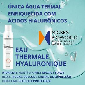 o spray eau thermale hyaluronique micrex-bioworld é um produto inovador e exclusivo que combina os benefícios da água termal enriquecida com ácido hialurônico. Com anvisa 25351. 645048/2022-14, esse spray refresca, hidrata e revitaliza a pele, proporcionando uma aparência saudável e jovem. O ácido hialurônico presente no spray possui propriedades hidratantes que ajudam a preencher linhas finas, rugas e melhorar a elasticidade da pele. Além disso, forma uma película protetora invisível que mantém a pele hidratada ao longo do dia. A água termal, rica em oligoelementos e minerais, proporciona uma sensação de frescor e vitalidade à pele, especialmente em climas quentes ou secos. Ela também ajuda a acalmar a vermelhidão e irritação, sendo indicada para peles delicadas. Esse spray pode ser utilizado em todos os tipos de pele e possui indicações ampliadas devido ao enriquecimento em ácido hialurônico. É ideal para pessoas que desejam manter a pele hidratada, suave e saudável, além de reduzir rugas, sulcos e linhas de expressão. Modo de uso: para utilizar o spray eau thermale hyaluronique micrex-bioworld, basta pulverizar a uma distância de 30cm da região tratada, evitando os olhos. Deixe secar naturalmente, sem passar as mãos ou pano. Pode ser utilizado antes ou depois da maquiagem, servindo também como fixador de maquiagem. Vantagens: - combinação exclusiva de água termal enriquecida com ácido hialurônico. - hidrata e revitaliza a pele. - preenche linhas finas, rugas e melhora a elasticidade da pele. - refresca e suaviza a pele. - forma uma película protetora invisível que mantém a pele hidratada. - indicado para todos os tipos de pele. Compre agora o spray eau thermale hyaluronique micrex-bioworld e desfrute dos benefícios da água termal e do ácido hialurônico para uma pele hidratada, suave e saudável. Marca: Micrex Bioworld