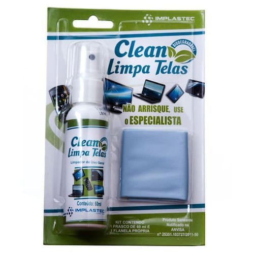 .- Pode ser utilizado em televisores e monitores de Plasma e LCD- Composição:- Água- Álcool- 2-n-Butoxietanol- Beta-Etoxietanol- Aspecto: Líquido transparente- Odor: Característico- Densidade a 25 C: 0,930 a 0,933 g/cm- Frascos Pump 60ml- Modo de usar: Aplicar sobre a tela do monitor, em seguida remover com auxílio de toalha multi-uso até secar completamente. - Observações: Leia atentamente as instruções do produto antes de usá-lo. Marca: Não Informado Ean: 7909468492095