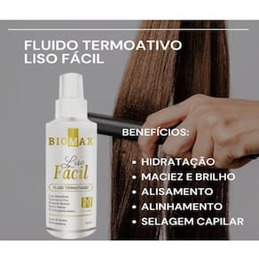 Spray finalizador liso fácil O liso fácil é um fluído termoativo condicionante em spray que ajuda na finalização de todos os tipos de cabelo. O fluído conta com o total de 20 benefícios que irão deixar os cabelos extraordinários entre eles: Sem parabeno; sem corante; proteção térmica; proteção solar; super brilho; maciez; anti frizz; protetor térmico; sela a cutícula capilar; perfuma os cabelos; hidrata os cabelos; blindagem; previne e melhora pontas duplas; reduz o volume do cabelo; repara danos; sem formol; cabelos mais leves; melhora os resultados da chapinha; suaviza os fios; reduz o ressecamento. Modo de uso Após lavar os cabelos como de costume, remova o excesso de água com uma toalha se preferir aplique um creme sem enxágue também. Agite o liso extremo e borrife o spray por todo o cabelo. Após a aplicação, penteie os cabelos e finalize e finalize utilizando chapinha, secador e/ou modelador de cachos. O liso fácil pode ser todas as vezes que for alisar os cabelos, pois através do calor, o produto é ativado. Anvisa 25351095902202108 Quantidade do kit 120 ml Marca: Não Informado Ean: 7890950874522