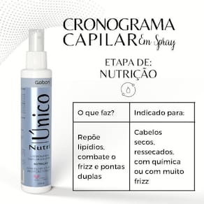 Garanta cabelos mais saudáveis, hidratados e livres do frizz com o Cronograma Capilar Spray Nutri Unico 100ml da Gaboni. Experimente e surpreenda-se com os resultados!