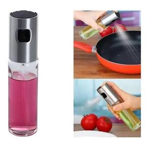 Galheteiro Spray para azeite e vinagre. Contém: 01 Spray para azeite ou vinagre Matéria prima: vidro e inox. Dimensões: 18,0 x 4,0 cm. Capacidade: 135ml