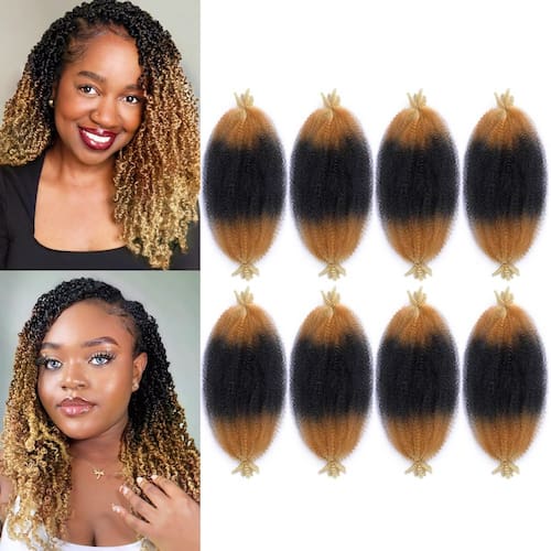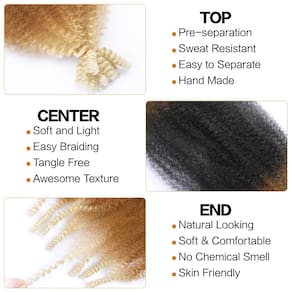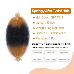 Cabelo torcido de mola de 40,6 cm, 8 pacotes de cabelo torcido afro para cabelos crespos macios e crespos, extensões de cabelo trançadas sintéticas para mulheres negras cubanas (40,6 cm, pacote com 8, - 1. Especificações de cabelo torcido elástico: extensões de cabelo afro twist 40,6 cm 35±5g/pacote (8 pacotes/lote, 6 pacotes/lote, 3 pacotes/lote), geralmente 6-8 pacotes são necessários para uma cabeça inteira e podem ser utilizados para qualquer estilo de cabelo (belos estilos Spring & Bomb Twist). - 2. Material do cabelo torcido afro elástico: extensões de cabelo sintético afro feitas de fibra sintética de qualidade premium. O cabelo macio e leve, pré-separado e pré-afro torcido é cheio, elástico e fácil de instalar. Nosso cabelo elástico afro torcido está mais próximo do cabelo humano e mais natural de usar. - 3. Ocasiões e estilos adequados: o cabelo trançado Marley é perfeito para qualquer ocasião, como ternos para a vida diária, trabalho, escola, casamento, festa, viagem, show, desfile de moda, festa temática, encontros, bailes de máscaras em qualquer outra ocasião. O cabelo trançado Marley torcido é fácil de separar e usar com um crochê, pode ser facilmente utilizado para diferentes estilos de acordo com sua preferência, como estilos sem nós, borboletas, locs envelhecidos, coques, rabos de cavalo, mini torções, torções de paixão, pontos macios jumbo, tranças de caixa. - 4. Cor do cabelo de crochê com torção de mola: as cores de cabelo Kinky Twist incluem preto (1B), preto natural (nº 2), marrom claro (30#), marrom avermelhado (350#). As cores da imagem e do produto real podem variar ligeiramente com base na resolução da tela.