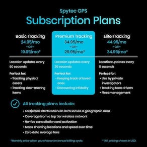 . Mais fácil e mais fácil. Rastreamento gps mais rápido: Spytec GPS oferece o rastreamento GPS mais rápido para veículos, objetos de valor e entes queridos usando tecnologia de satélite 4G. Receba alertas de localização do rastreador GPS através de nossos aplicativos para iOS/Android. Software intuitivo e recursos: assista facilmente o seu rastreador se mover ao longo de um mapa, personalizar limites, puxar dados históricos, velocidade, distância e mais. Ideal para uso como rastreador GPS para crianças ou rastreador GPS de carro. Serviço confiável: Com mais de 99,99% de tempo de atividade e um tempo de processamento de 0,256 milissegundos, nossa tecnologia baseada em nuvem atenderá às suas necessidades, desde o pai com um único rastreador GPS até a crescente frota de negócios. Pequeno e versátil: Nosso mini rastreador GPS tem apenas 1" de espessura com até 2,5 semanas de duração da bateria. Basta definir/ativar e usar como rastreador GPS para Caminhões, Frotas, rastreador de bicicleta GPS, rastreador de motocicleta ou rastreador de motorista adolescente. Garantia vitalícia e assi acessível: A assi anual começa em $19.95/mês. Uma assi alternativa mensal começa em $24.95/mês e pode ser cancelada a qualquer momento, mente. Também oferecemos suporte 24 horas por dia, 7 dias por semana e uma garantia vitalícia em rastreadores GPS com uma assi ativa.