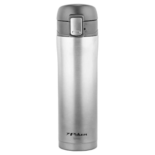 Corpo externo e ampola em aço inox conserva por mais tempo a temperatura dos líquidos, tampa inovadora com vedação ‘gatilho’ de fácil abertura com um simples click (operação com uma mão) não requer contato dos dedos no bocal, priorizando a higiene.