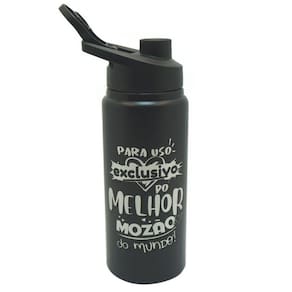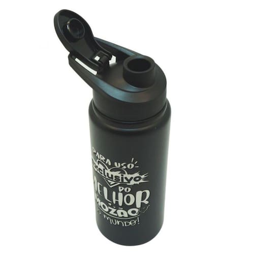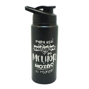 Fabricada especialmente presentear aquela pessoa especial, não importa a ocasião, o squeeze conta com capacidade para cerca de 600ml e traz alumínio em sua composição, apresentando material resistente e duradouro. Traz preto na tampa, que por sua vez, é rosqueável, com bocal e conta com alça, o que facilita seu manuseio.