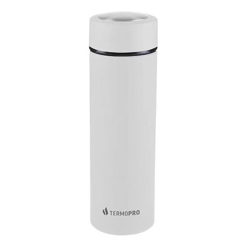 Squeeze Térmico Inox Branco 500Ml - Termopro Agora com este lindo lançamento da termopro o squeeze em aço inox veio para facilitar sua vida ; Com muitas elegância e um design inovador , vai facilitar muito sua vida em casa, trabalho, academia etc. Com dupla parede de inox para suportar sua bebida preferida quente por 12 horas e fria por 24 goras Características: - sistema de rosca com vedação á prova de vazamento - ampola térmica com dupla camada em aço inox - filtro em aço inox Dimensões: Altura: 22 cm Largura: 6 cm Diâmetro: 6 cm Peso:260 g Ean: 7899631654651