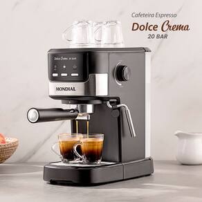 A Cafeteira Expresso Dolce Crema 20 Bar da Mondial é perfeita para os amantes de um café encorpado e marcante. Com pressão de 20 Bar, ela extrai os sabores mais ricos e intensos do café moído, resultando em uma bebida cremosa e cheia de aroma. A Dolce Crema oferece versatilidade, permitindo a preparação de uma variedade de bebidas à base de café, desde expressos curtos e encorpados até lattes e cappuccinos cremosos. Além disso, a cafeteira também é compatível com adaptadores para bebidas de cápsulas, vendidos separadamente.