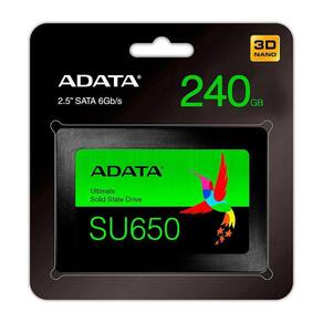 MARCA: ADATAMODELO: ULTIMATE SU650 P/N: ASU650SS-240GT-R ESPECIFICAÇÕES: Capacidade: 240GB Fator de forma: 2,5" Flash: 3D NAND Interface: SATA 6Gb/s Terabytes gravados (TBW): 140TB Resistência contra choque: 1500G / 0,5ms MTBF: 2.000.000 horas Dimensões (C x L x A): 100,45 x 69,85 x 7mm Temperatura operacional: 0C a 70C Temperatura de armazenamento: -40C a 85C DESEMPENHO: Leitura sequencial (máx.): Até 520MB/s Gravação sequencial (máx.): Até 450MB/s IOPS de leitura aleatória de 4 KB (máx.): Até 40K IOPS de gravação aleatória de 4 KB (máx.): Até 75K