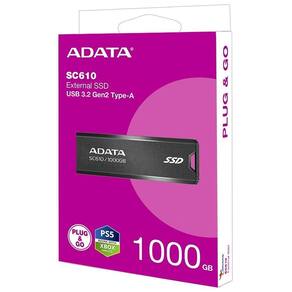 O SSD Externo ADATA SC610 é a solução ideal para quem busca alta capacidade de armazenamento e velocidade de transferência. Com incríveis 1TB de espaço, este dispositivo compacto e elegante oferece a praticidade do plug-and-go via USB 3.- Com design preto sofisticado, é o parceiro perfeito para suas necessidades de armazenamento.