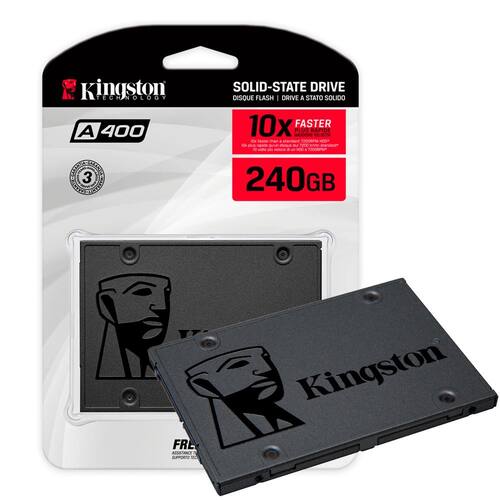 A unidade de estado sólido A400 da Kingston aumenta drasticamente a resposta do seu computador com tempos incríveis de inicialização, carregamento e transferência, comparados a discos rígidos mecânicos. Reforçado com uma controladora de última geração para velocidades de leitura e gravação de até 500MB/s e 450MB/s¹, este SSD é 10x mais rápido do que um disco rígido tradicional¹ para melhor desempenho, resposta ultrarrápida em multitarefas e um computador mais rápido de modo geral. Também mais confiável e durável do que um disco rígido, o A400 é feito com memória Flash. Não há partes móveis, com menor probabilidade de falhas do que um disco rígido mecânico. Também é mais frio e mais silencioso e sua resistência a choques e vibração torna-o ideal para notebooks e outros dispositivos móveis de computação.
