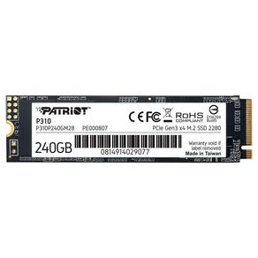 Ssd Patriot M.2 240gb P310 Nvme - P310p240gm28 SSD Patriot M.2 240GB P310 NVMe - P310P240GM28Patriot traz ao público o melhor dos seus SSD com o NVMe P310 de 240GB M.2, permitindo expandir o armazenamento do seu computador, ao mesmo tempo que aumenta o desempenho com velocidades de leitura até 1700 MB/s e velocidades de escritura até 1000 MB/s.ESPECIFICAÇÕESMARCAPatriotMODELOP310REFERÊNCIAP310P240GM28CAPACIDADE240 GBVELOCIDADE DE GRAVAÇÃOAté 1000 MB/sVELOCIDADE DE LEITURAAté 1700 MB/sFATOR DE FORMAM.2 NVMeTECNOLOGIASmartECCCOMPATIBILIDADEWindows 7 / 8.0 / 8.1 / 10INTERFACEPCIe Geração 3 x4 - Suporta NVMe 1.3