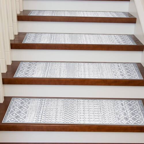 Lahome Escadas antiderrapantes - ?Antiderrapante e seguro?: Os degraus de escada com suporte de borracha são revestidos com um suporte TPR para ajudar o tapete de escada a permanecer no lugar. Aderência suficiente para proteger idosos, crianças e animais de estimação ao subir e descer escadas. - ?Sem instalação? - Basta colocar degraus de escada de borracha na escada. Se você precisar reposicionar ou remover, não deixe resíduos e sem arranhões, sempre mantenha o chão limpo. Não é necessário remover a parte traseira transparente. - ?Corredor de escada macia?: o tapete de escada antiderrapante é feito de lã sintética de alta qualidade. O tecido quase parece tecido felpudo e aveludado, trazendo o máximo em suavidade luxuosa sob os pés. Perto do chão e reduz o ruído de subir e descer escadas. - ?Fácil de limpar?: Os degraus de escada internos laváveis Lahome são criados para facilitar a manutenção. Lavar à máquina com água fria no ciclo delicado. Use um pequeno aspirador de pó portátil para remover a poeira ou o cabelo para cuidados diários. E limpa diretamente os derramamentos na superfície do tapete. - ?Proteja sua escada?: capas de escada para escadas de madeira protegem seus pisos do desgaste. O tamanho de 20 cm x 76 cm serve na maioria das escadas. Tapete de escada moderno com design de padrão marroquino/geométrico adiciona um visual elegante e exclusivo à casa.