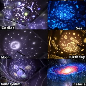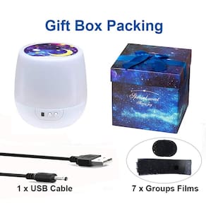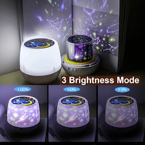 Star Projector Night Light for Kids with 360 Degree RotationNight Light Projector for Kids - Star Light Projector with USB Cable, 360 Degree Rotation Star Projector Lamp for Kids Star Projector for Bedroom Night Light Best Gifts for Kids - 7 Movie Sets [6 Different Color Modes] Esta lâmpada de luz noturna para crianças vem com 3 lâmpadas LED atualizadas (branco, azul, amarelo), projeta uma faixa muito maior e gera muito mais luz. Mais brilhante do que a edição anterior, ele emite 6 modos de cores diferentes que brilham na parede (branco, azul, amarelo, sequencial, combinação e desbotamento lento). Pressione o botão "A" para definir o modo de cor desejado [Rotação de 360 graus + 3 modos de brilho diferentes] Pressione longamente o botão "B" por 3 segundos, a tela interna girará constantemente 360 graus. Nossa lâmpada projetor Galaxy é projetada com 3 modos de brilho de iluminação (10%, 50%, 100%) para cada modo de cor, basta pressionar o botão "B" para ajustar o brilho para diferentes aplicações. A combinação de 3 modos de brilho + 6 modos de cor projetará 18 tipos de efeitos de iluminação vívidos. É uma ótima luz noturna para crianças que estão com medo. a escuridão [6 filmes] A lâmpada do céu noturno vem com 6 grupos de cenários opcionais: Lua, Constelação, Mundo do Mar, Estrela e Lua, Feliz Aniversário, Sistema Solar e os Oito Planetas. Todas as imagens são claramente projetadas no teto do quarto. O projetor de luz noturno das estrelas das crianças oferece um fantástico céu estrelado em movimento, efeito de constelação brilhante e romântico, misterioso e belo mundo marinho ... As crianças podem desfrutar dessas cenas em uma mente calma, ajudá-los com um sonho doce [Conveniente 2 maneiras de fonte de alimentação] Este projetor de luz noturna para crianças para o quarto é alimentado por 3 pilhas AA (não incluídas) ou cabo USB de 31 polegadas (incluído), este cabo USB é compatível com a interface USB do laptop, powerbank e todas as tomadas USB. Ele pode ser facilmente levado para fora ou usar o cabo USB para decorar o quarto de seus filhos para economizar bateria. Quando esta luz noturna do céu estrelado é alimentada pelo cabo USB, certifique-se de remover todas as baterias com antecedência. [Ótimo presente para crianças] Este projetor de luz noturna bebê transforma silenciosamente o quarto das crianças em um santuário estrelado, a luz noturna colorida do projetor infantil também cria uma atmosfera relaxante no quarto de seus filhos, perfeito para a festa de aniversário das crianças, dia das crianças, celebração de Natal e decoração de casamento. Também pode ser como uma lâmpada noturna romântica e luz de decoração de interiores. Personagens principais do produto:1. Nossas luzes noturnas para crianças têm 6 modos de cores diferentes + 3 modos de brilho diferentes, todos esses modos são alcançados pelo design de um botão.2. Alimentado por 3 pilhas AA (não incluídas) ou cabo USB (incluídas). Certifique-se de que remove todas as pilhas quando o cabo USB estiver a funcionar.3. Pressione e segure o botão "B" por 3 segundos, a tela interna girará constantemente em 360 graus. Para projetar um céu estrelado dinâmico no quarto de seus filhos.4.Este projetor de luz de teto estrela possui 7 grupos de filmes opcionais, crie cenas vívidas para se aproximar do céu estrelado e do mundo do mar, transformando assim o quarto de seus filhos em um ambiente relaxante como o céu à noite, conforte seu bebê para dormir bem .5. Nossa luz projetor de quarto é perfeita para o presente de aniversário das crianças, presente do dia das crianças, presente de Natal e presente de aniversário, e também perfeito como uma lâmpada de berçário do bebê.6. Esta lâmpada projetora de constelação também é ideal para decorar ocasiões com estrelas salientes coloridas, como decoração de casamento, decoração de festa ou decoração de Natal.7. Além disso, este projetor de luz de céu também pode ser como uma lâmpada noturna romântica e luz de decoração de interiores em seu quarto, permitindo que você desfrute de um momento romântico com sua família e amantes. Galaxy Night Light Projector Package inclui: 1 x Night Sky Projector1 x USB Cable1 x Manual do Usuário6 x Filmes