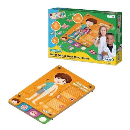 Com o jogo tridimensional em MDF da Linha de brinquedos STEAM Corpo Humano a criança aprende brincando sobre o corpo humano e suas funções. São 3 quebra cabeças divertidos para explorar diferentes partes do corpo humano e suas funções. Indicado para crianças a partir dos 8 anos de idade.