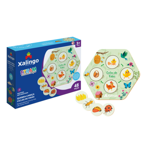 O Steam Quebra-Cabeça Ciclos de Vidas, é um jogo educativo composto por 48 peças, onde permite à criança aprender brincando sobre o ciclo de vida de animais, plantas, frutas e insetos! É ideal para professores trabalharem o conteúdo nas aulas e, além disso, auxilia no desenvolvimento da atenção, memória, concentração, coordenação motora, de maneira lúdica e divertida. Indicado para crianças a partir dos 3 anos.