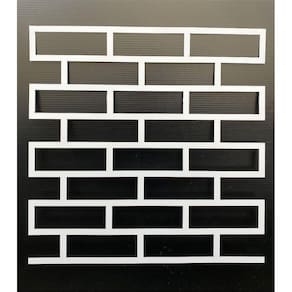 Stencil De Pintura Modelo Tijolinho Gabarito Revestimento De Parede 60cm x 60cm Quantidade do anúncio: 1 Todas as placas são da cor branca As placas são de poliestireno PSAI plástico Espessura: 0.5mm