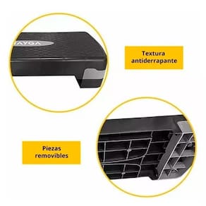 Características principais\ NBrand CrusecModel 2 Níveis\ Outras características\ NNúmero de módulos: 1\ NAltura mínima: 10 cm - 15 cm\ NComprimento x Largura: 68 cm x 28 cm\ NCom superfície antiderrapante:\ nDescrições\ nEspecificações:\ N-Altura: ajustável de 10 cm a 15 cm\ N-medidas: 68 cm de comprimento x 28 cm de largura\ N-Resistência: 100 kg - Resistência máxima 110 kg .-100% de material de PVC, durável e durável. Super fácil de incluir em suas rotinas para obter melhores resultados