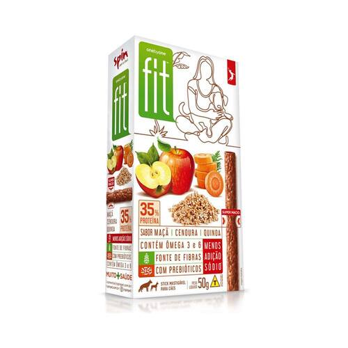 Stick Para Cães Fit Spin Pet Sabor Maçã, Cenoura e Quinoa - 50g - Indicado para cães; - Contém ômega 3 e 6; - Não possui transgênico; - Feito com 80% de carnes frescas. O Stick Para Cães Fit Spin Pet Sabor Maçã, Cenoura e Quinoa é perfeito para tornar os momentos junto ao seu cão mais divertidos e prazerosos. Conta com 80% de carnes frescas, é um alimento rico em proteínas e é uma ótima opção para premiar seu cachorro no adestramento, ou quando se mostrar obediente. O stick possui ômega 3 e 6, é um alimento saudável e muito saboroso proporcionando assim uma melhor qualidade de vida para seu cachorro. Composição Miúdos Bovinos, carne mecanicamente separada de aves (CMS), proteína de soja, umectante glicerina, amido, glicose, maçã desidratada, cenoura desidratada, quinoa, cloreto de sódio (sal comum), conservante sorbato de potássio, realçador de sabor glutamato monossódico, antioxidante ácido cítrico. Eventual substituto: ácido sórbico. Cuidados Não administrar o Petisco Stick Fit Spinpet para Cachorros como unica fonte de alimento. Após aberto consumir em até 7 dias.