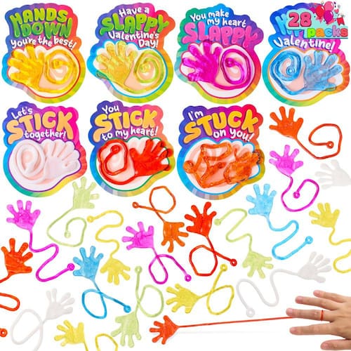- CARTAS COMBINANDO CHARMOSAS: Cada mão adesiva é combinada com uma carta correspondente com 7 designs. Os cartões dão um toque pessoal, tornando esses Sticky Hands with Cards não apenas brinquedos, mas presentes atenciosos para amigos.