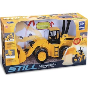 A carregadeira Still é um brinquedo perfeito para as crianças que adoram carrinhos e adoram poder controlá-los. Ela é articulada e possui alavancas que permitem que os pequenos controle o braço e a caçamba do carrinho, assim a criança possui uma maior mobilidade para brincar e seguir a sua imaginação. O carrinho ainda consta com um chassi cheio de detalhes e acabamentos que tornam ele muito mais bonito. Os pequenos irão adorar esta carregadeira e poderão brincar muito com seus amigos.Características:Material: Plástico.