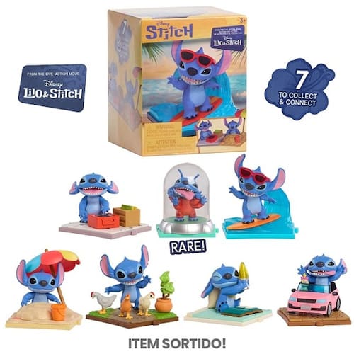 Stitch o Filme – Set Boneco Colecionavel Surpresa Stitch Com Cenario - Sunny O conjunto Boxes apresenta mini cenários inspirados no filme l Lilo e Stitch. São sete mini sets disponíveis que se conectam, formando cenas complementares do filme Idade acima de 3 anos Contem 1 figura 1 cenario Tamanho da embalagem 13 x 10 x 10 cm Fabricante Sunny