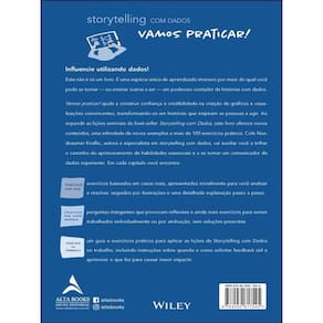 Influencie utilizando dados! Este não é só um livro. É uma espécie única de aprendizado imersivo por meio do qual você pode se tornar — ou ensinar outros a ser — um poderoso contador de histórias com dados. Vamos praticar! ajuda a construir confiança e credibilidade na criação de gráficos e visualizações convincentes, transformando-os em histórias que inspiram as pessoas a agir. Ao expandir as lições seminais do best-seller Storytelling com Dados, este livro oferece novos conteúdos, uma infinidade de novos exemplos e mais de 100 exercícios práticos. Cole Nussbaumer Knaflic, autora e especialista em storytelling com dados, vai auxiliar você a trilhar o caminho do aprimoramento de habilidades essenciais e a se tornar um comunicador de dados experiente. Em cada capítulo você encontra: exercícios baseados em casos reais, apresentados inicialmente para você analisar e resolver, seguidos por ilustrações e uma detalhada explanação passo a passo perguntas instigantes que provocam reflexões e ainda mais exercícios para serem trabalhados individualmente ou por atribuição, sem soluções prescritas um guia e exercícios práticos para aplicar as lições de Storytelling com Dados no trabalho, incluindo instruções sobre quando e como solicitar feedback útil e aprimorar o que fez para causar maior impacto Ean: 9788550817545