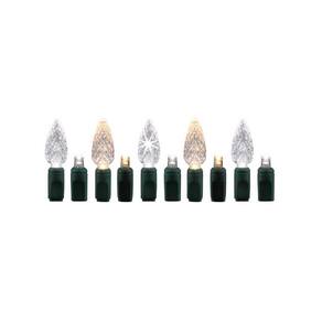 Combinamos o melhor de dois mundos com nossa nova iluminação de dueto. Este conjunto de 50 luzes LED brancas puras/brancas quentes alterna uma lâmpada cônica de 5 mm com uma lâmpada facetada cônica de 1 polegada. O emparelhamento reúne o brilho da lâmpada menor com a iluminação total da maior. A união cria uma aparência ornamental única e bonita, perfeita em qualquer lugar.