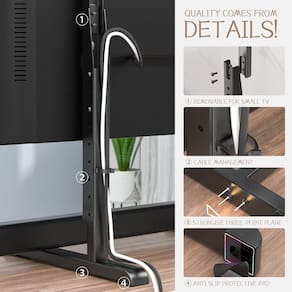 - Almofadas antiarranhões evitam o deslizamento - Este suporte de TV pesado é equipado com pés acolchoados para ajudar a proteger as superfícies dos móveis e evitar deslizamentos