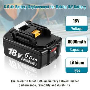 - Especificação do produto: Capacidade: 6000mAh, Tipo: íon de lítio, tensão: 18V, quantidade: pacote com 2, substituição da bateria Makita 18V