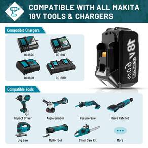 - Compatibilidade: substitua a bateria de 18v Makita BL1830B BL1840B BL1850B BL1860B BL1815 BL1825 194309-1 194205-3 194204-5 LXT400, etc. Compatível com Makita 18v ferramentas BC BD BH série BJ e carregadores DC24SC, DC18RA, DC18RC, DC18SD, DC18SE, DC18SF, etc. - Alta qualidade: substitua as baterias Makita de 18V, use células da mais alta qualidade, confiáveis com tecnologia de carga rápida, fornecendo sobrecarga e descarga excessiva proteção para aumentar a vida útil da bateria
