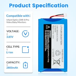 7717 Substituição para bateria de íon de lítio Infant Optics DXR-8 Pro Sp 554478 3,85V 2800mAh (não compatível com monitor de bebê DXR-8)