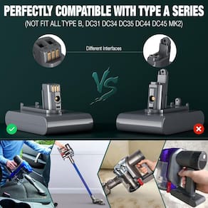 -?AMPLA COMPATIBILIDADE?Substituição da bateria DC35 perfeitamente compatível com Dyson DC31 DC34 DC35 DC44 917083-01 17083-2811 18172-01-04 17083-4211 18172-0201 917083-03 (Tipo A). NÃO serve para DC34 Animal, DC44 MK2, número da peça: 17083-04 (Tipo B). Verifique a máquina antes de comprar.