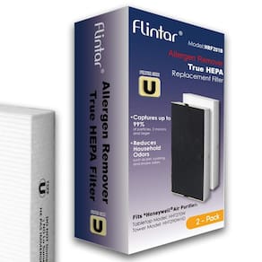 Atualize seu purificador de ar para filtragem HEPA de grau médico H13. O filtro de substituição HEPA de grau médico HRF201B (Filtro U) H13 da Flintar é totalmente compatível com os purificadores de ar Honeywell HHT270W, HHT290 Series, e Febreze FHT170, FHT180 e FHT190. Este sistema de filtro HEPA True Dual Action contém: - Pré-filtro de carbono: retém partículas maiores no ar como poeira, pelos, pelos de animais de estimação, fiapos e absorve odores domésticos de animais de estimação, cozinhar, fumar e compostos orgânicos orgânicos prejudiciais - Filtro HEPA verdadeiro de grau médico H13: captura 99,97% das partículas transportadas pelo ar até 0,3 mícrons de tamanho, criando ar purificado e fresco para você e sua família Usar filtros Flintar premium de alta eficiência e substituir os filtros regularmente ajudará a otimizar o desempenho de limpeza de ar. Substitua o seu sistema de filtro HEPA de ação dupla a cada 4 meses para um desempenho ideal. Totalmente compatível com os seguintes purificadores de ar: Modelo de mesa Honeywell: HHT270W, HHT270WHD Modelo da torre Honeywell: HHT290W, HHT290WHD Febreze FHT170, FHT180 e FHT190 Series Isenção de responsabilidade: * Honeywell e Febreze são marcas registradas dos fabricantes autênticos respeitados. Qualquer uso desses nomes de marca e designação de modelo é feito exclusivamente para fins de demonstração de compatibilidade. - Contém dois (2) sistemas de filtragem HEPA de dupla ação de alta eficiência que inclui pré-filtro de carbono ativado e filtro HEPA verdadeiro de grau médico H13 - O pré-filtro de carbono ativado retém partículas maiores no ar como poeira, cabelos, pelos de animais de estimação, fiapos e neutraliza odores domésticos de animais de estimação, fumaça, cozinha, incêndios selvagens e compostos orgânicos orgânicos nocivos - O filtro HEPA verdadeiro de grau médico H13 captura 99,97% das partículas transportadas pelo ar até 0,3 mícrons de tamanho, criando ar fresco e purificado para você e sua família - Fácil de substituir e descartável, sem necessidade de ferramentas. 100% de garantia de satisfação - Substitua a cada 4 meses, dependendo do uso e do ambiente